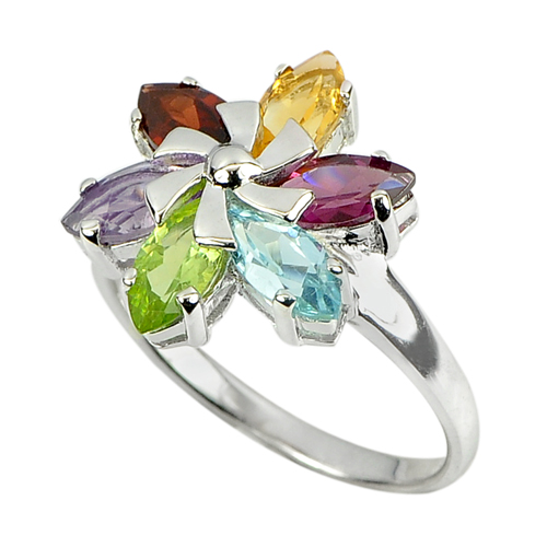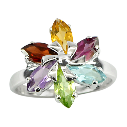 4.20 G. Natural Amethyst Garnet Topaz Peridot 925 Sterling Silver Ring Size 9