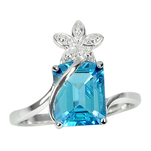 4.09 G. Octagon Natural Gem Swiss Blue Topaz 925 Sterling Silver Ring Size 9.5
