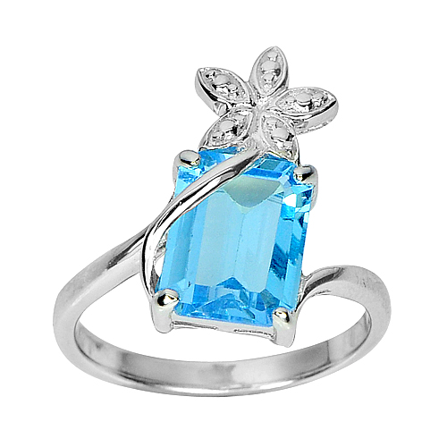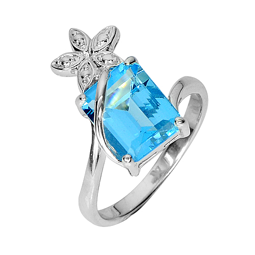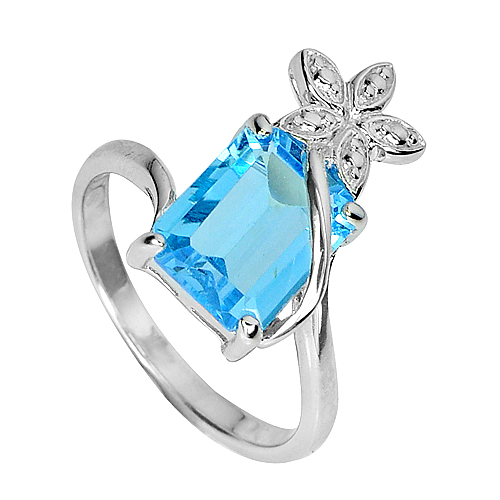 3.63 G. Natural Swiss Blue Topaz Real 925 Sterling Silver Jewelry Ring Size 7