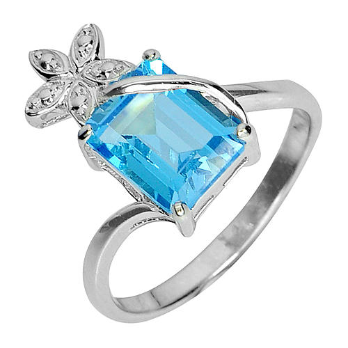 4.02 G. Natural Swiss Blue Topaz Gem 925 Sterling Silver Jewelry Ring Size 9