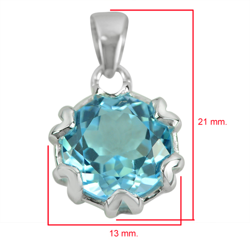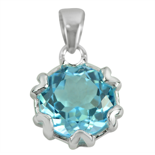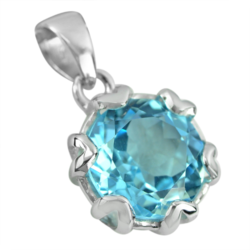 2.82 G. Round Natural Gemstone Swiss Blue Topaz Real 925 Sterling Silver Pendant