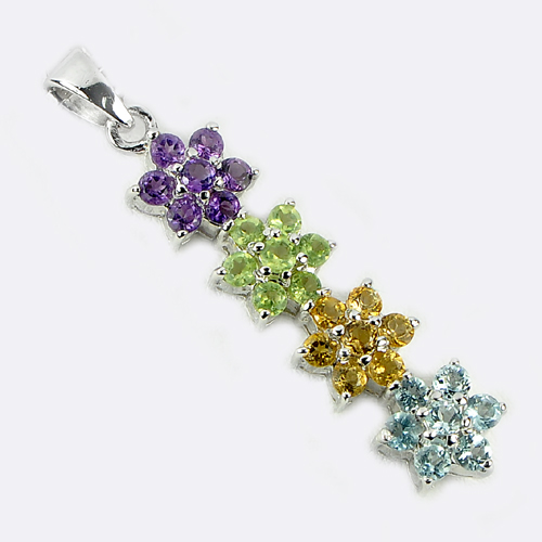 3.95 G. Natural Amethyst Peridot Citrine Topaz Real 925 Sterling Silver Pendant
