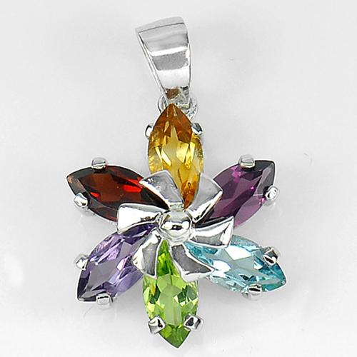 925 Sterling Silver Pendant Jewelry with Natural Rhodolite Garnet Peridot Topaz