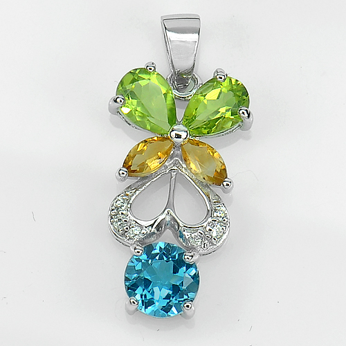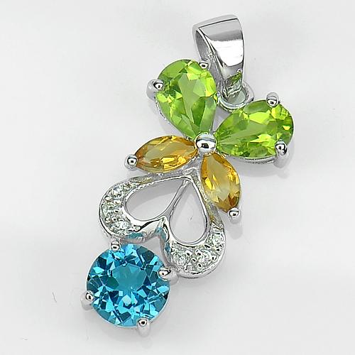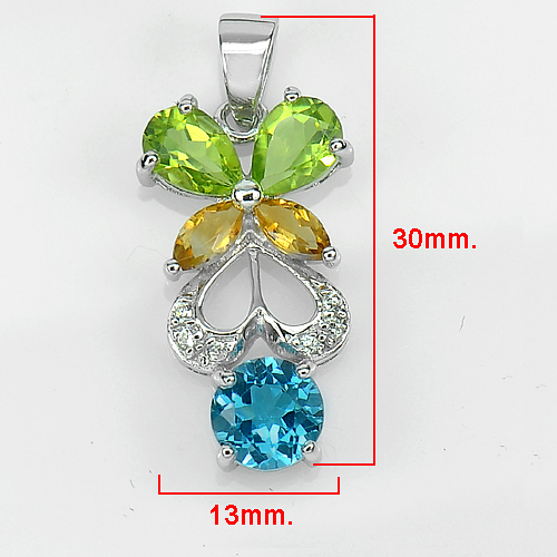 925 Sterling Silver Pendant 2.98 G. Natural Gems Topaz Citrine Peridot with CZ