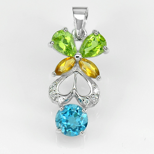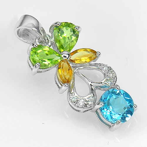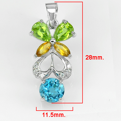 2.71 G. Natural Gemstones Topaz Peridot Citrine Real 925 Sterling Silver Pendant