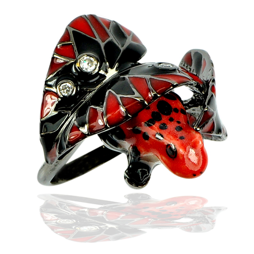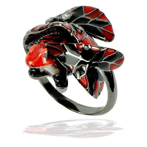 9.64 G. Red Frog Enamel with Round CZ Real 925 Sterling Silver Oxidize Ring 8