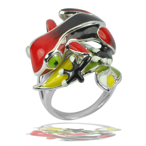 Alluring 12.69 G. Black Red Frog Enamel Design 925 Sterling Silver Ring Size 7