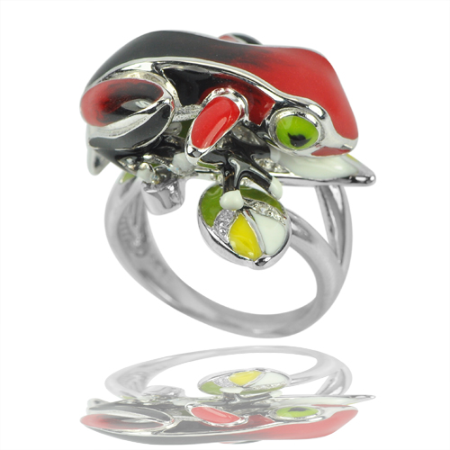 Frog Black and Red Enamel. White CZ Round Size 1 x 1 Mm. Stam 925