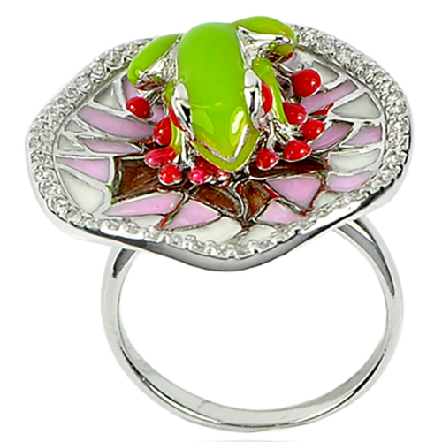 Grteen Frog Enamel. White CZ Round Size 1 x 1 Mm.