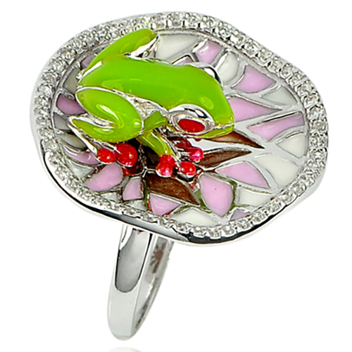 Green Frog White CZ Real 925 Sterling Silver 6.74 G. Ring Size 6 Thailand