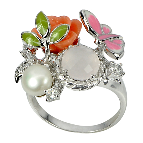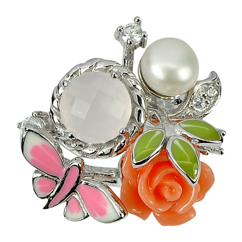 7.91 G. Natural White Pearl Rose Pink Gems Real 925 Sterling Silver Ring Size 9