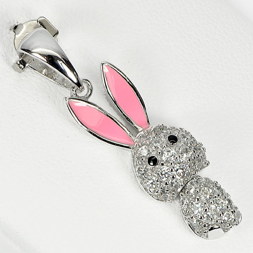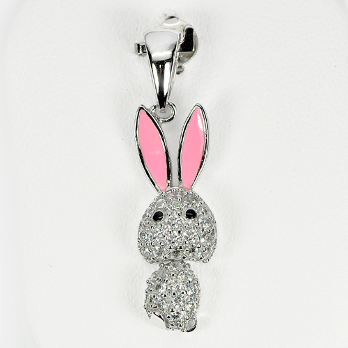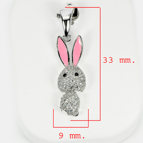 3.39 G. Lovely Rabbit Design Real 925 Sterling Silver White Golde Plated Pendant