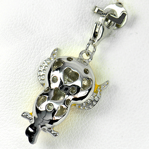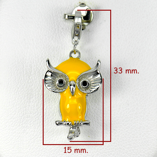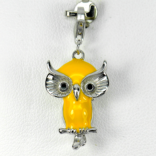 3.52 G. Owl Yellow Enamel Real 925 Sterling Silver White Gold Plated Pendant