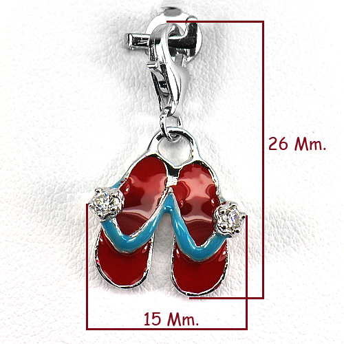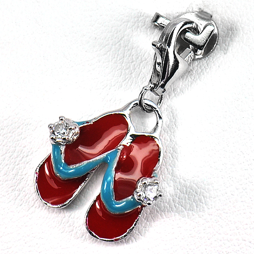 1.85 G. Slippers Red Enamel Real 925 Sterling Silver White Gold Plated Pendant