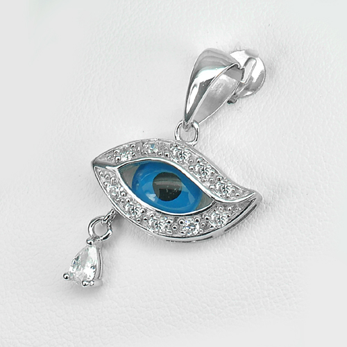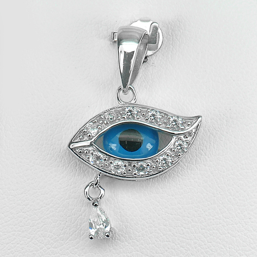 3.30 G. The Eye Design Real 925 Sterling Silver White Gold Plated Pendant