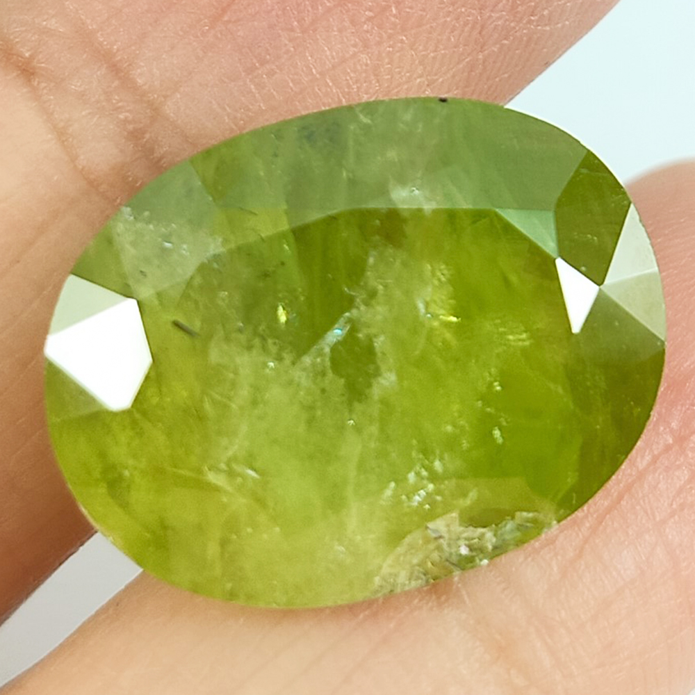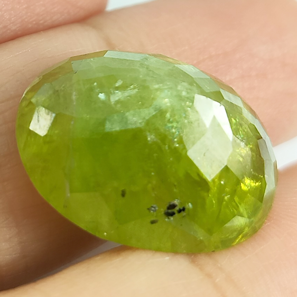 Green Yellow Sphene 24.60 Ct. Oval Shape 15.5 x 20.2 Mm. Gemstones Madagascar