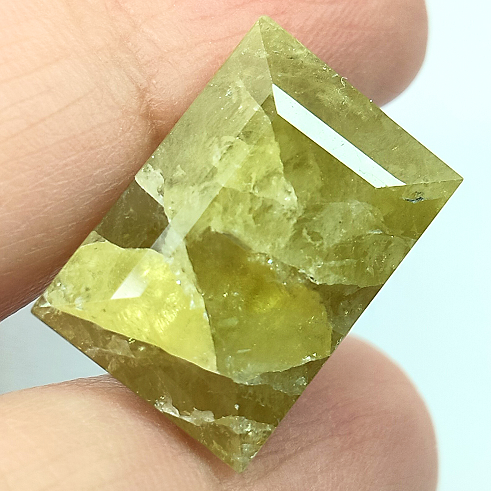 Natural Green Yellow Sphene 29.86 Ct. Baguette Shape Gemstone From Madagascar