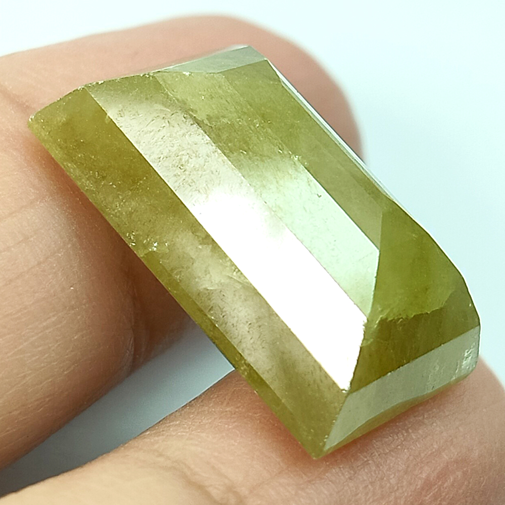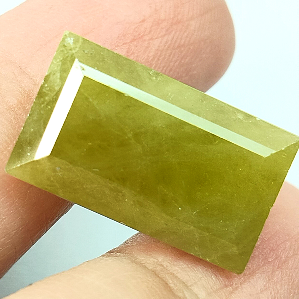 Natural Green Yellow Sphene 22.19 Ct. Baguette Shape 20 x 11.7 Mm Gemstone From Madagascar