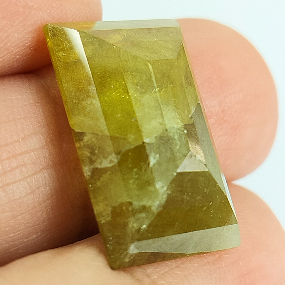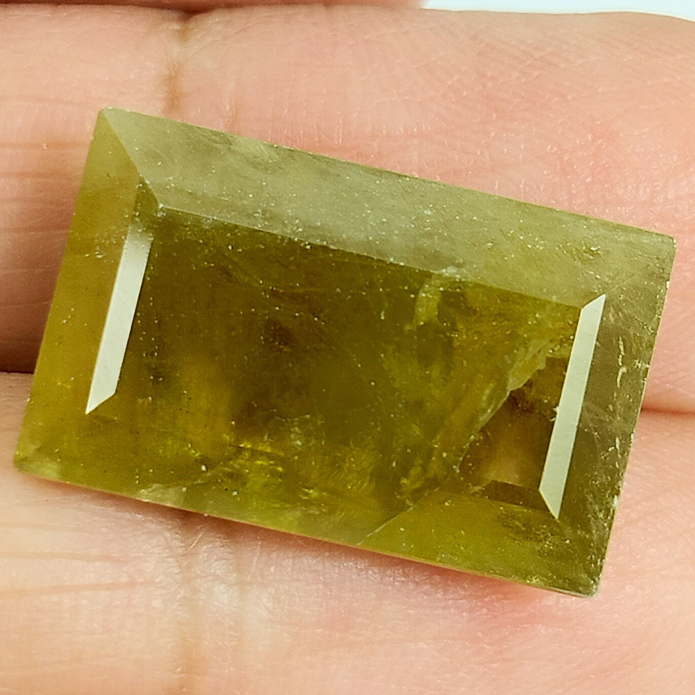 Natural Green Yellow Sphene 18.59 Ct. Baguette Shape Gemstone From Madagascar