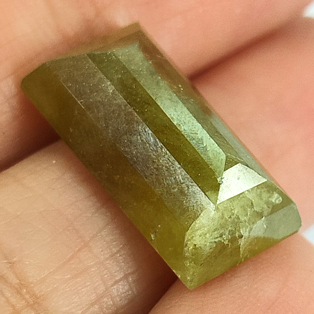 Green Yellow Sphene 13.65 Ct. Cushion Natural Unheated Gemstones Madagascar