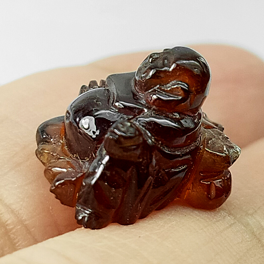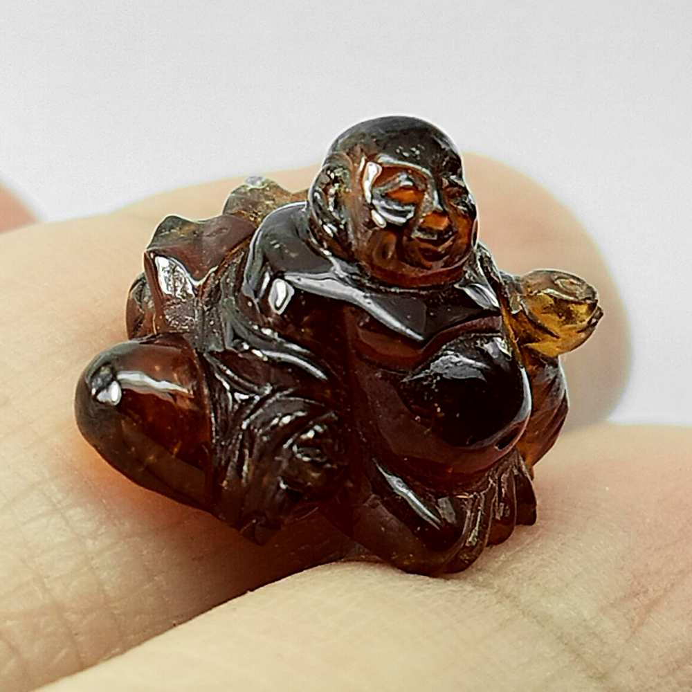 Natural Orange Spessartine Garnet 16.15 Ct.Happy Buddha Carving 17.5 x 15.5 Mm Gemstone From Namibia