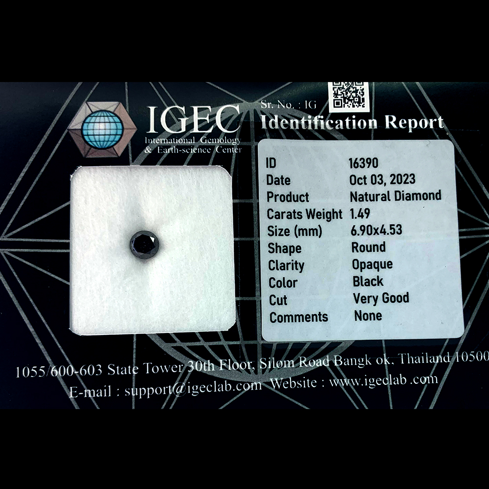 Natural Black Diamond 1.49 Ct. Round Brilliant Cut 6.90 x 4.53 Mm. From Belgium