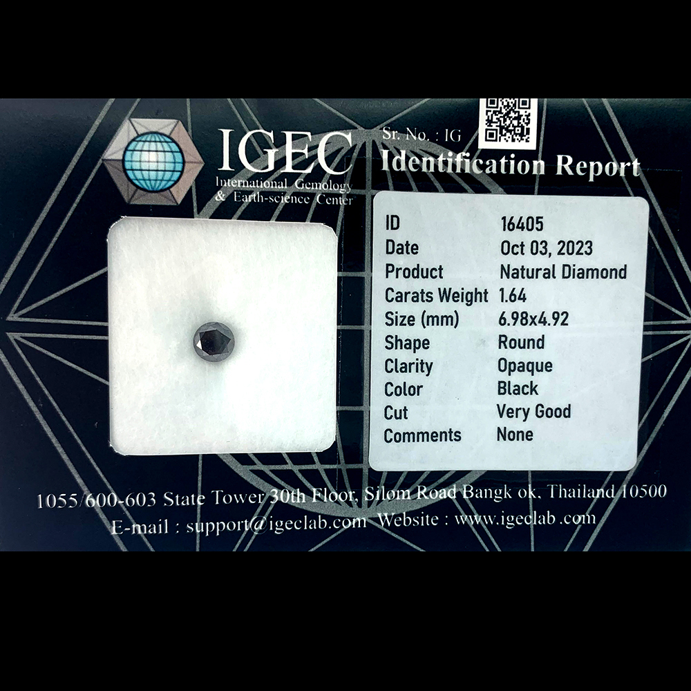 Natural Black Diamond 1.64 Ct. Round Brilliant Cut 6.98 x 4.92 Mm. From Belgium