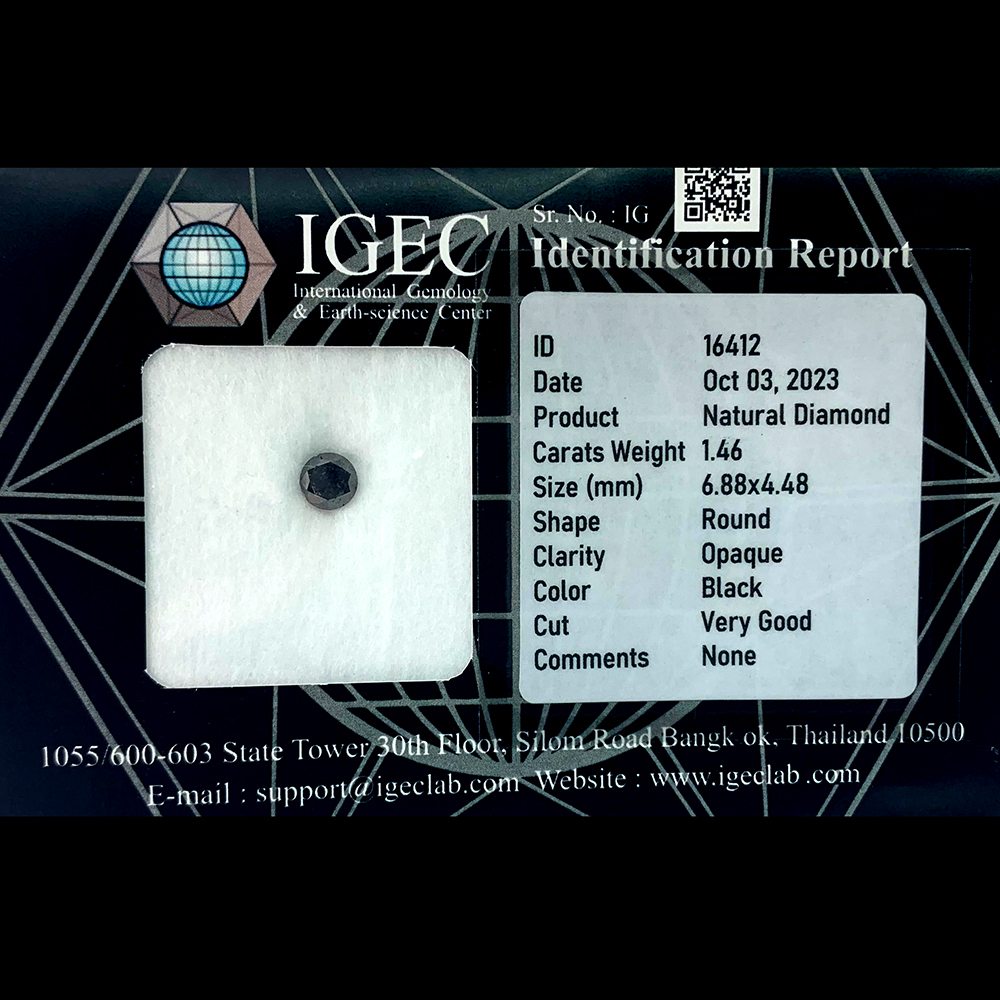 Natural Black Diamond 1.46 Ct. Round Brilliant Cut 6.88 x 4.48 Mm. From Belgium