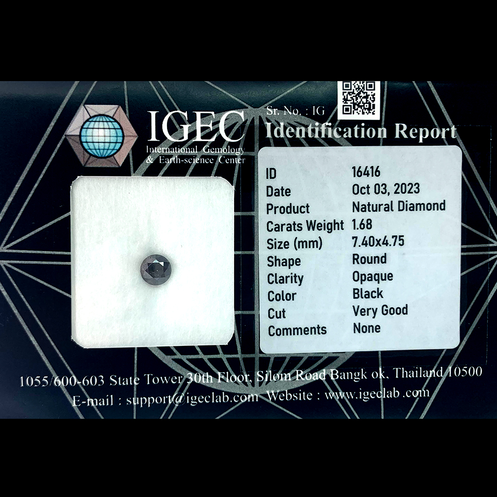 Natural Black Diamond 1.68 Ct. Round Brilliant Cut 7.40 x 4.75 Mm. From Belgium