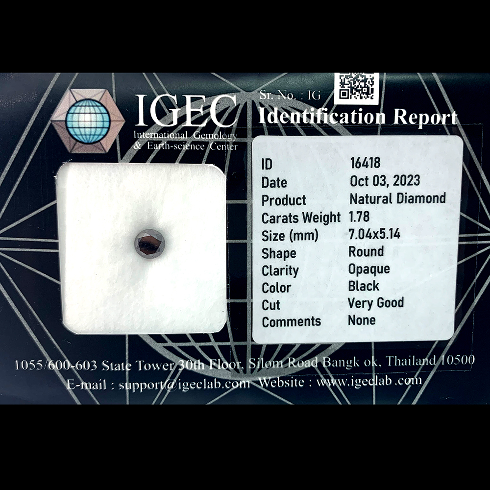 Natural Black Diamond 1.78 Ct. Round Brilliant Cut 7.04 x 5.14 Mm. From Belgium