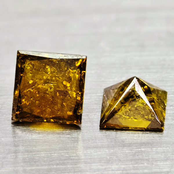 Natural Red Yellow Loose Diamond 0.17 Ct. 2 Pcs. Square Princess Cut 2.7 Mm