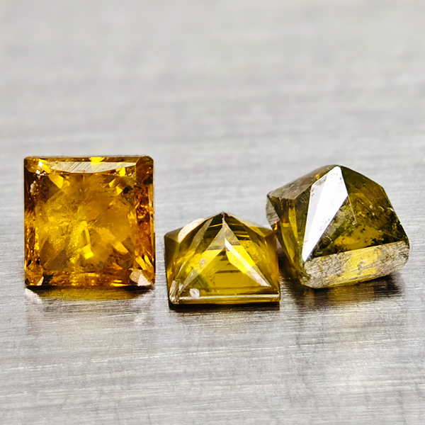 Natural Red Yellow Loose Diamond 0.55 Ct. 3 Pcs. Square Princess Cut 3.1 Mm