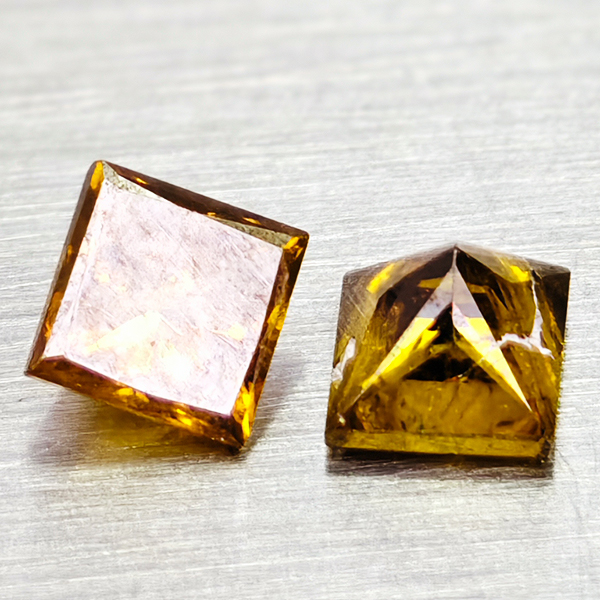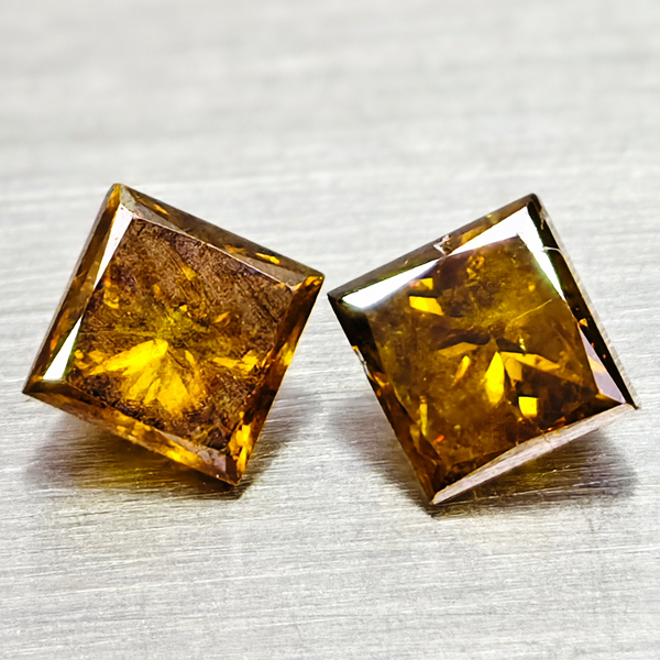 Natural Red Yellow Loose Diamond 0.45 Ct. 2 Pcs. Square Princess Cut 3.1 MM