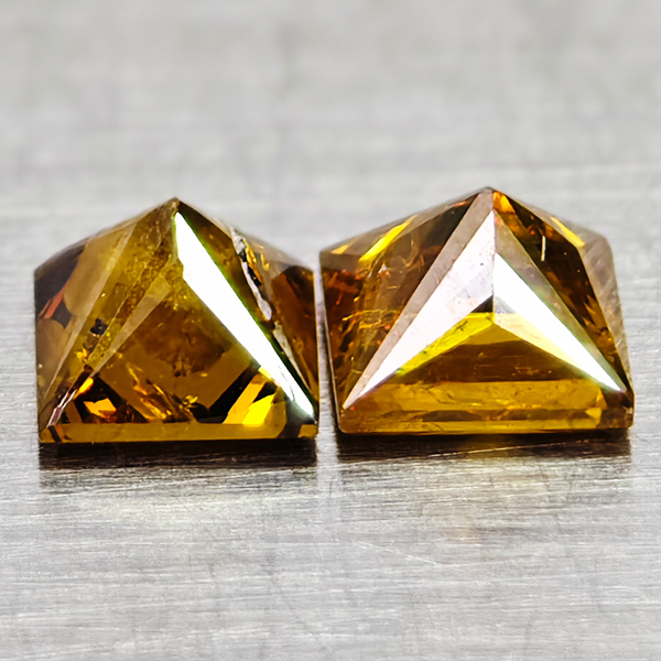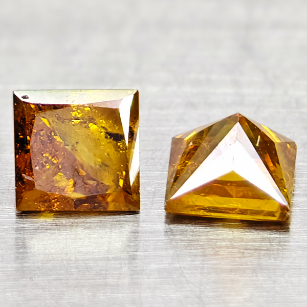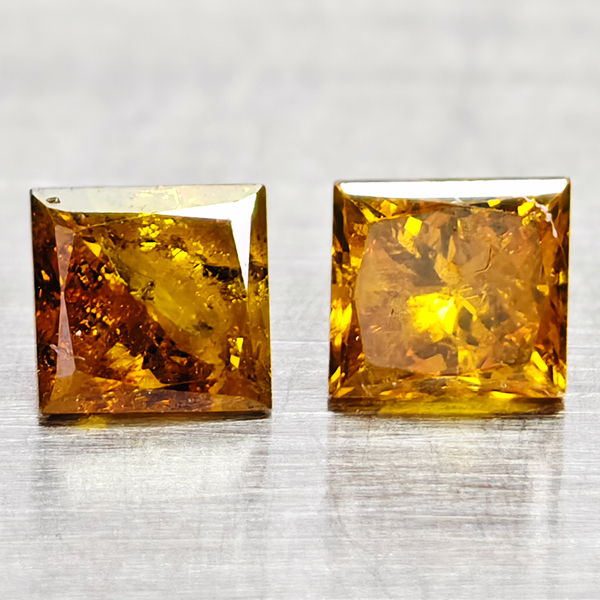 Natural Red Yellow Loose Diamond 0.35 Ct. 2 Pcs. Square Princess Cut 3 Mm