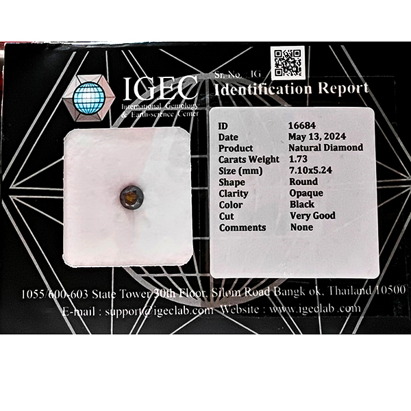 Natural Black Diamond 1.73 Ct. Round Brilliant Cut 7.10 x 5.24 Mm. From Belgium