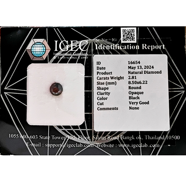 Natural Black Diamond 2.81 Ct. Round Brilliant Cut 8.50 x 6.22 Mm. From Belgium