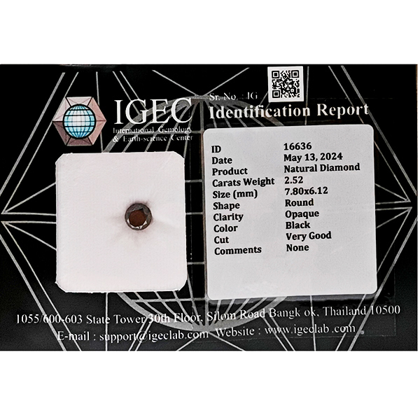 Natural Black Diamond 2.52 Ct. Round Brilliant Cut 7.80 x 6.12 Mm. From Belgium