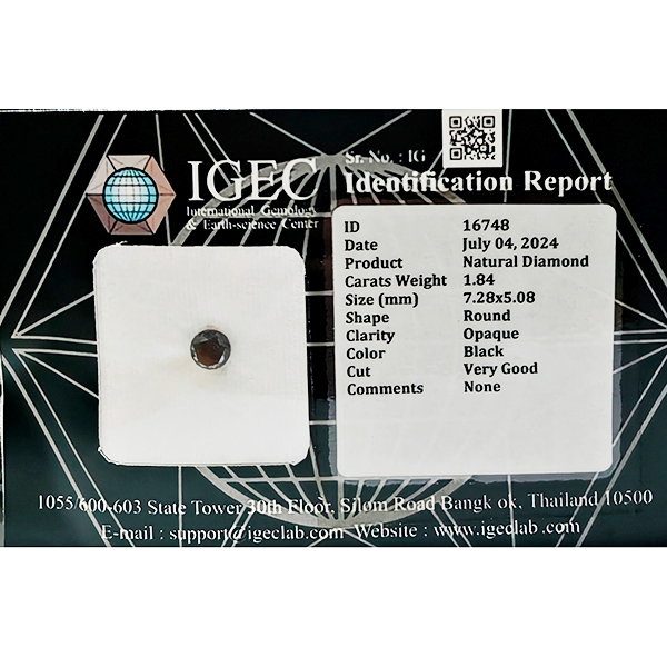 Natural Black Diamond 1.84 Ct. Round Brilliant Cut 7.28 x 5.08 Mm. From Belgium