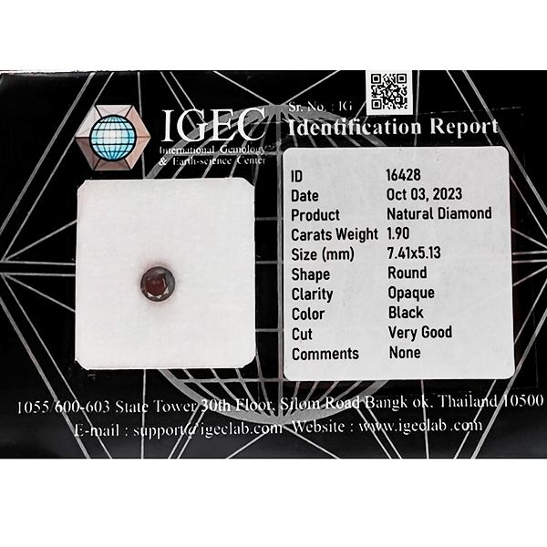 Certified Natural Black Diamond 1.90 Ct. Round Brilliant Cut 7.41 x 5.13 Mm