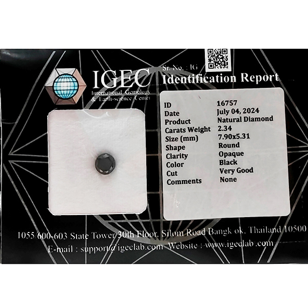 Certified Natural Black Diamond 2.34 Ct. Round Brilliant Cut 7.90 x 5.31 Mm