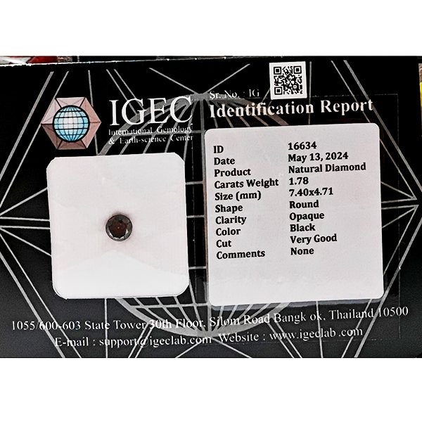 Certified Natural Black Diamond 1.78 Ct. Round Brilliant Cut 7.40 x 4.71 Mm
