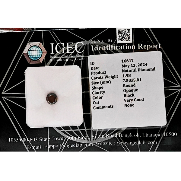 Certified Natural Black Diamond 1.98 Ct. Round Brilliant Cut 7.50 x 5.01 Mm
