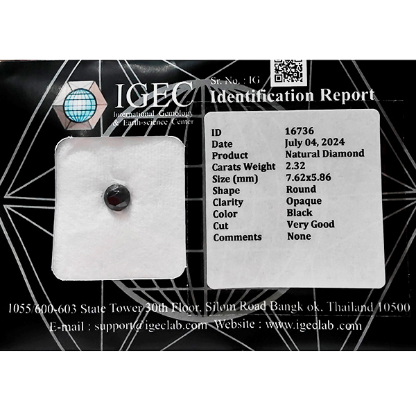 Certified Natural Black Diamond 2.32 Ct. Round Brilliant Cut 7.62 x 5.86 Mm
