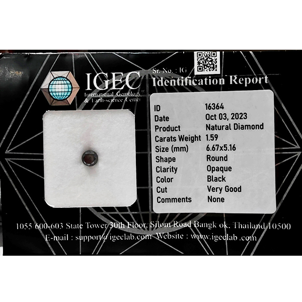 Certified Natural Black Diamond 1.59 Ct. Round Brilliant Cut 6.67 x 5.16 Mm