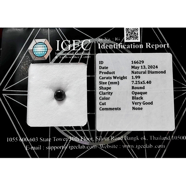 Certified Natural Black Diamond 1.99 Ct. Round Brilliant Cut 7.25 x 5.40 Mm