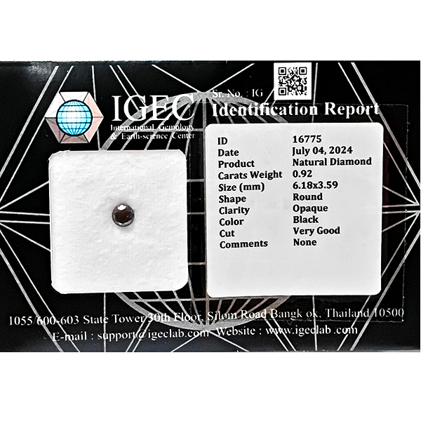 Certified Natural Black Diamond 0.92 Ct. Round Brilliant Cut 6.18 x 3.59 Mm