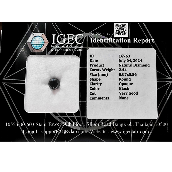 Certified Natural Black Diamond 2.44 Ct. Round Brilliant Cut 8.07 x 5.56 Mm