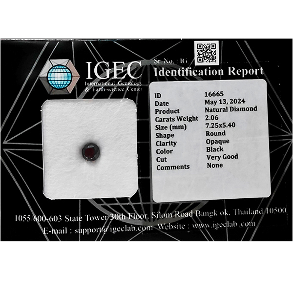 Certified Natural Black Diamond 2.06 Ct. Round Brilliant Cut 7.25 x 5.40 Mm