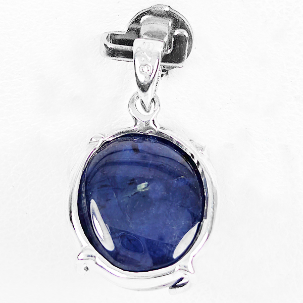 925 Sterling Silver Pendant Jewelry With Natural Blue Sapphire Oval Cabochon