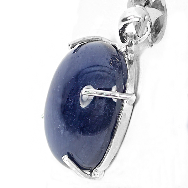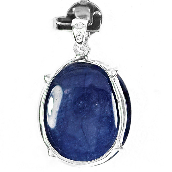 925 Sterling Silver Pendant Jewelry With Natural Blue Sapphire Oval Cabochon
